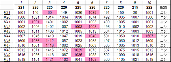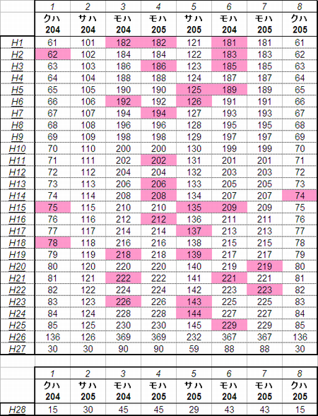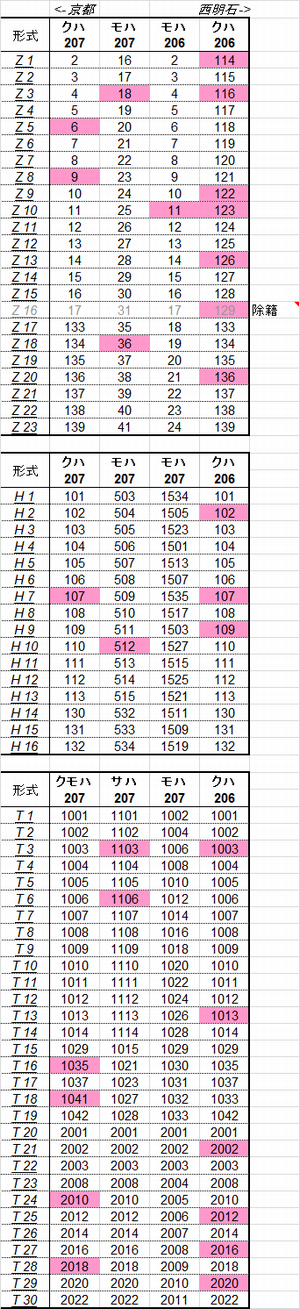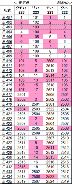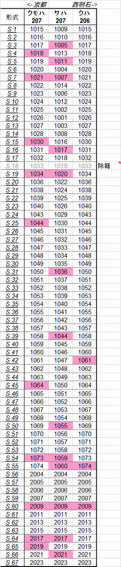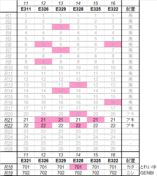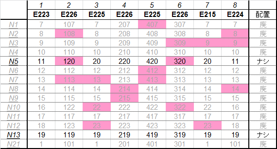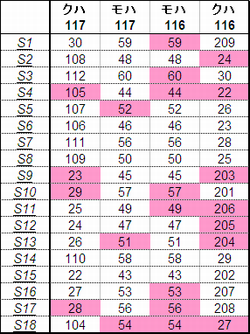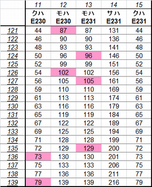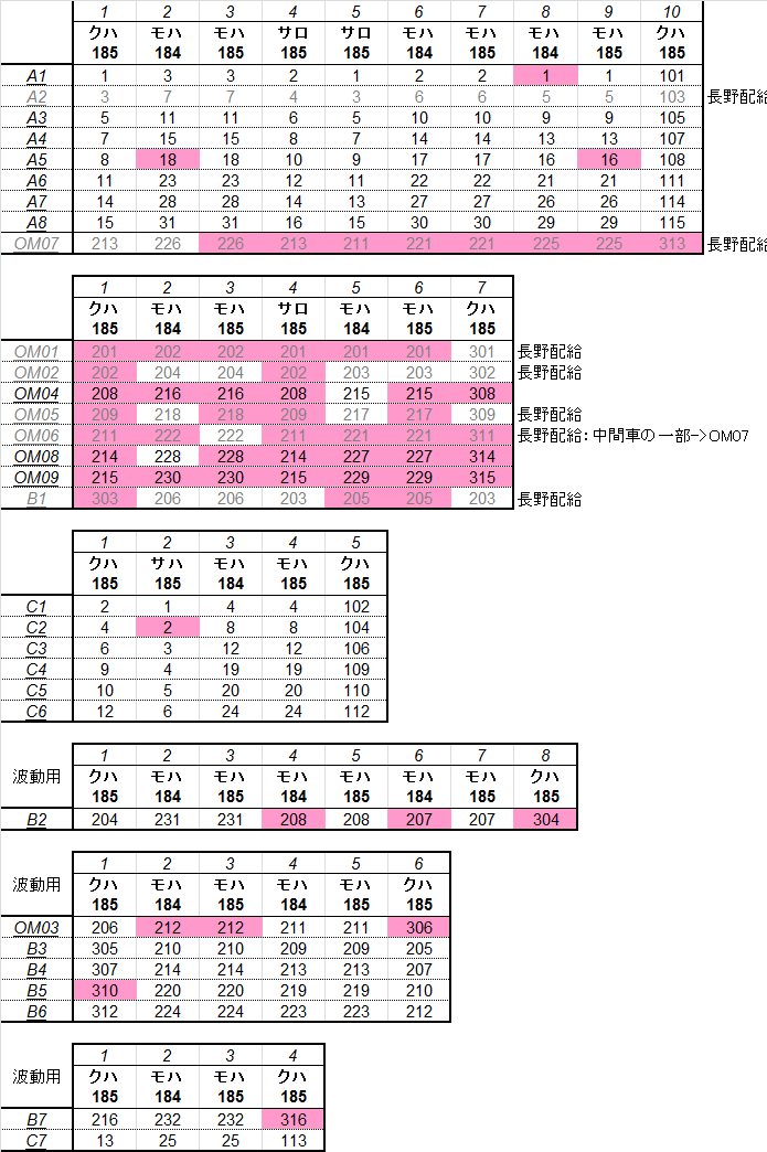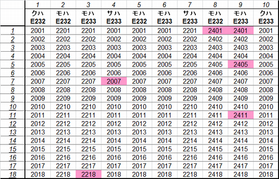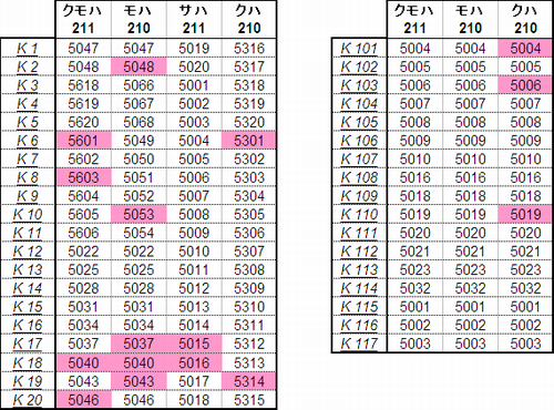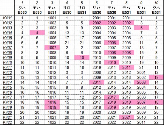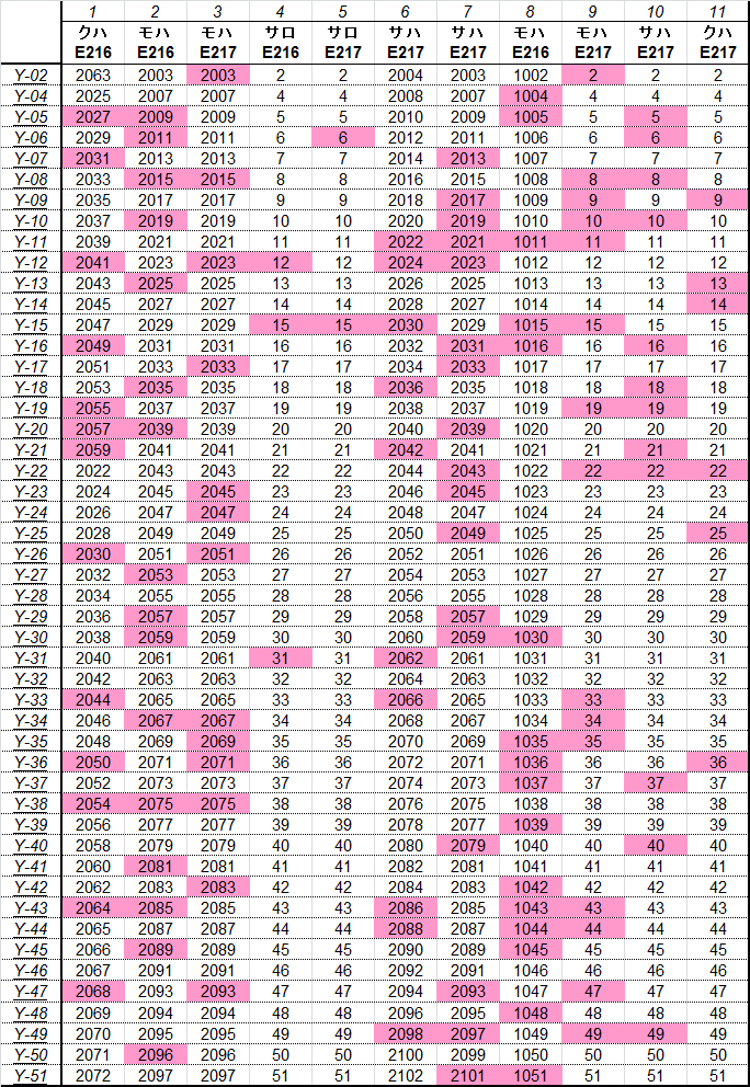 乗車した列車の車番は1999年から記録を付けていますが、公開するのに適した方法を上手く見つけられないため、主要編成に限り編成単位で紹介することにしました。まとまりしだい、ボチボチ増やしていく予定です。クリックすると、某表計算ソフトのスクリーンショットが出てきます。ピンクの色つきセルが、既乗車両です。→順次、表示方式をPDFに改めています。