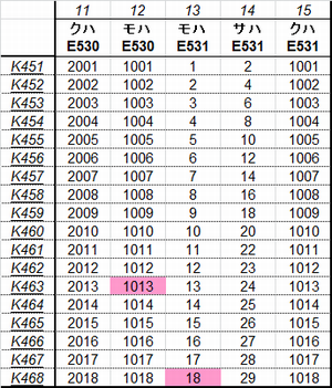 E531系付属編成