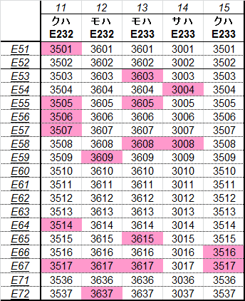 E233系U編成・E231系U編成